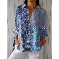 Giselle | Ocean Patchwork Blouse blends stripes, dots, and geometric blocks into a refreshing design that feels both modern and timeless. The mix of deep and light blues makes it versatile for everyday wear — perfect for seaside walks, casual outings, or adding a touch of artistic flair to your wardrobe.